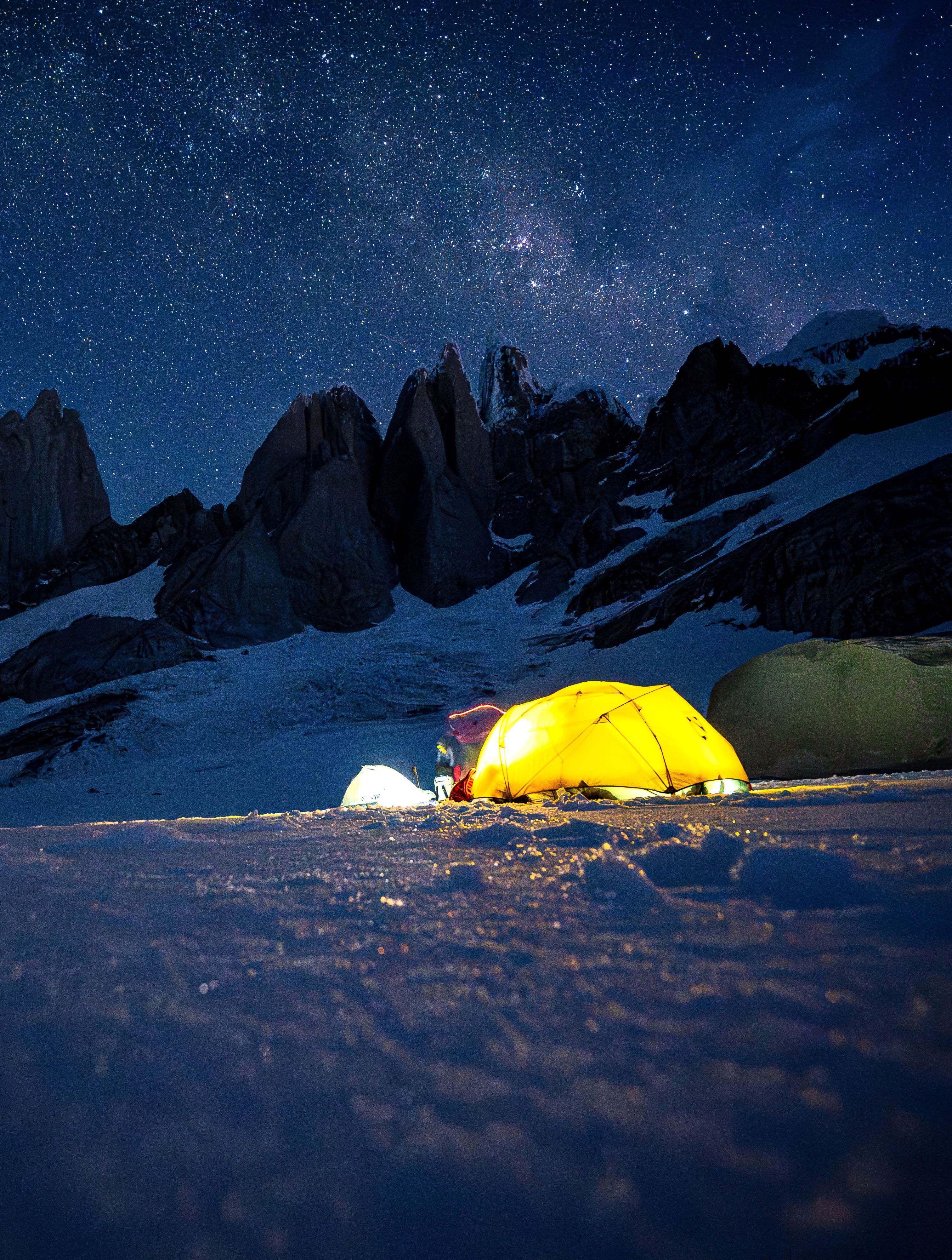 Das ganze Schauspiel hat leider zur Folge, dass sich bald die Sonne verabschiedet, und mit ihrem verschwinden eine eiskalte Nacht hereinbricht. Jeder vergräbt sich in seinem wärmespendenden Schlafsack, die Italiener verschwinden zu dritt in einem Ein-Personen-Zelt. Und ich kuschle mich neben meine...Kamera.