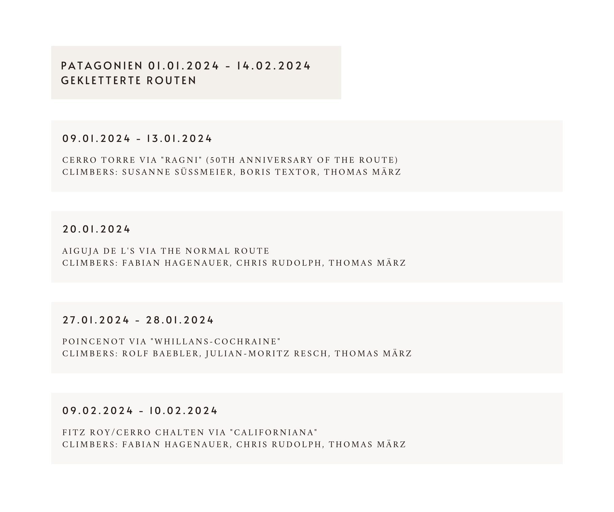Außerdem an Rolo Garibotti für die vielen Informationen und den Wetterbericht per Satellitentelefon.