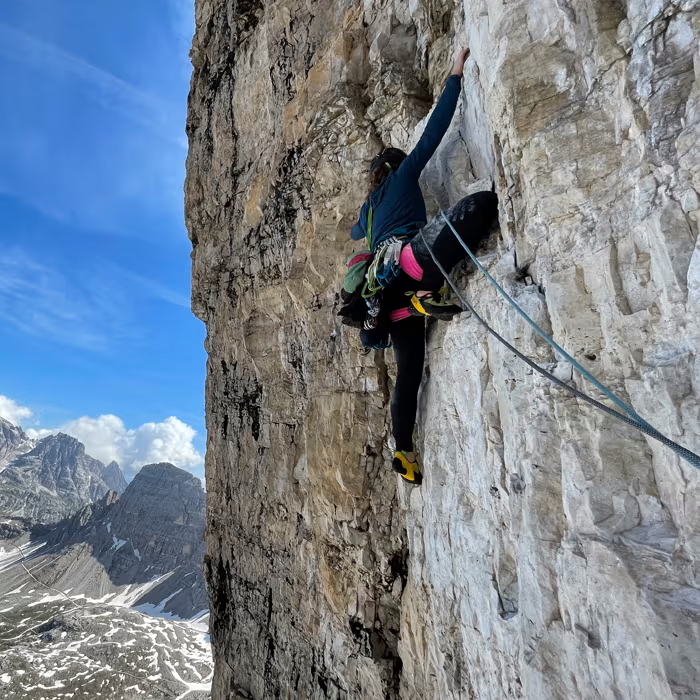 Jedenfalls seitdem habe ich ein Problem: Was tun im Winter bzw. beim Alpinklettern? Vor allem auch bei Wind! Falls noch irgendjemand dieses Problem hat, ich habe eine Lösung gefunden: Die Austra Softshell-Leggings! Gut gegen Wind und Kälte, bei viel Kälte auch perfekt in Kombination mit einer warmen zweiten Leggings darunter (z.B. Powerstretch Women's Tight). So bleibt das 'Leggings-Feeling' und man erfriert nicht 😊. Perfekte Durchstiegsvorraussetzungen für Winter- und Alpinklettern!