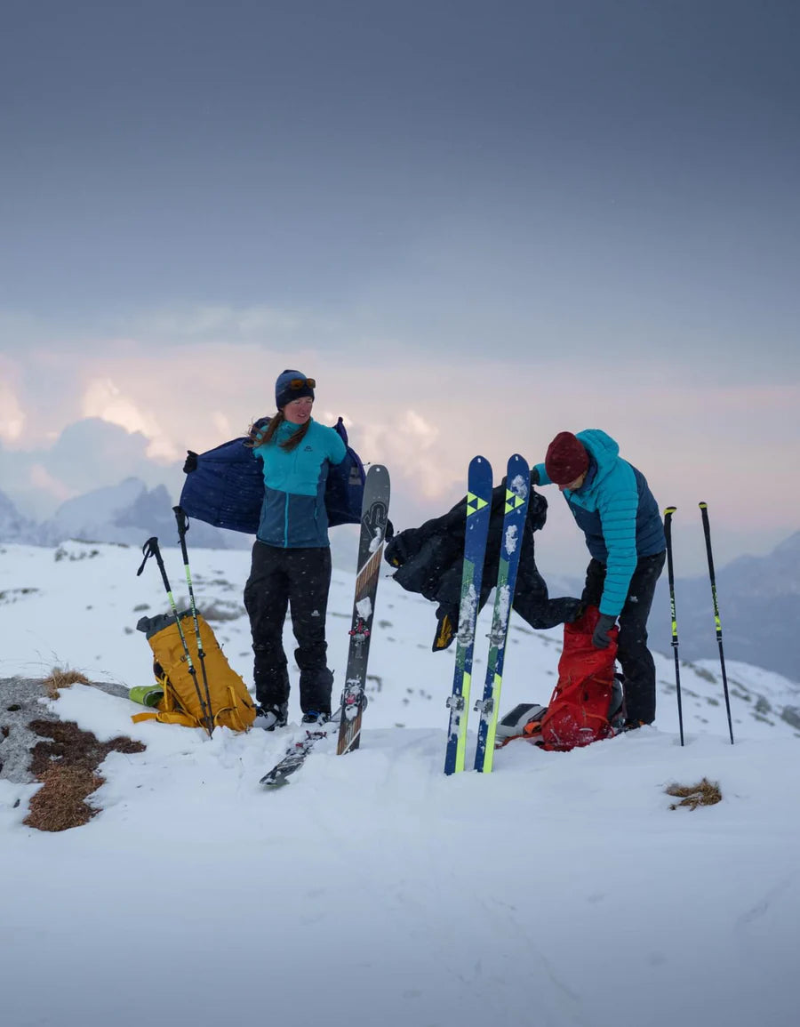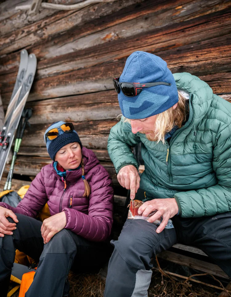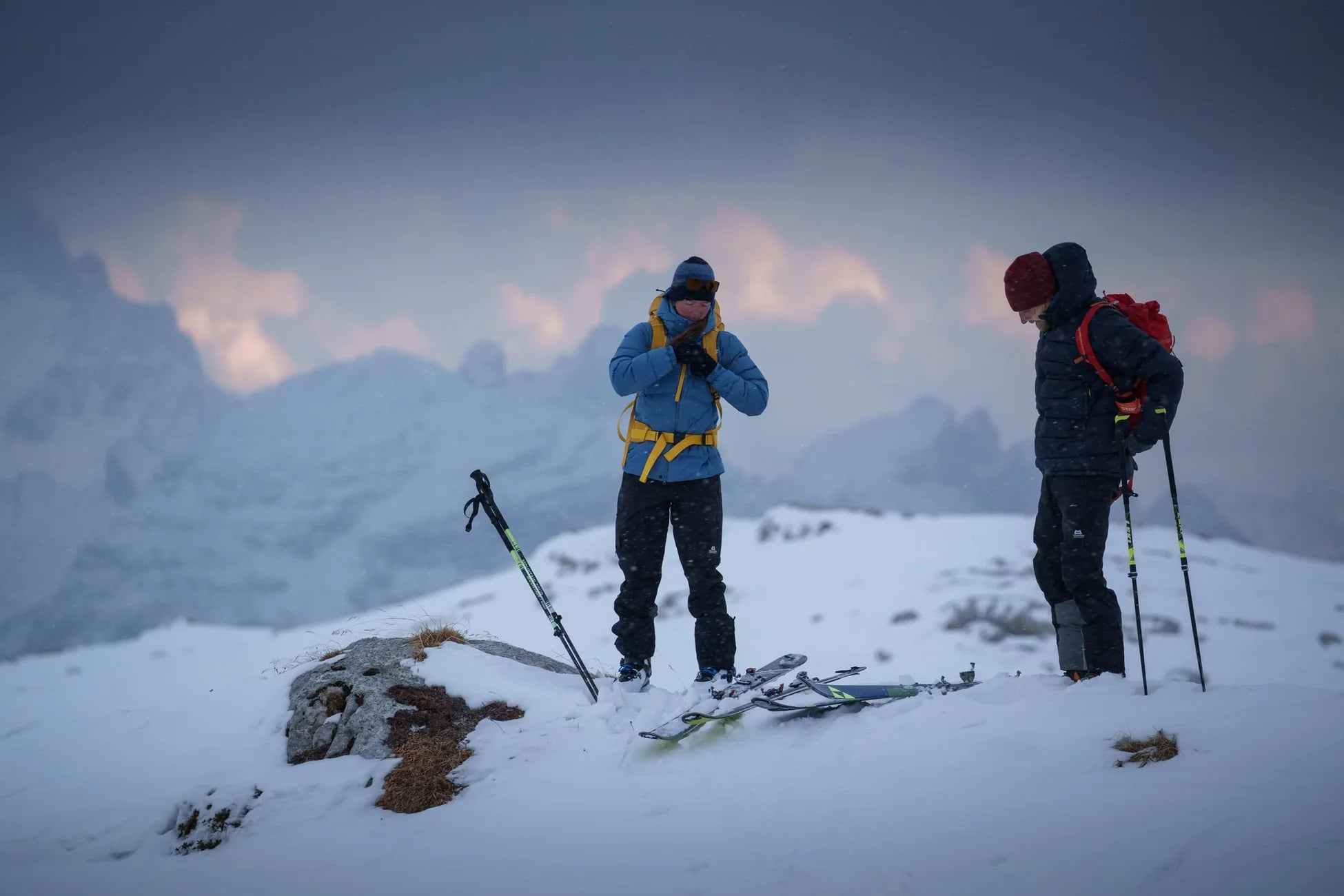 Es gibt wenige Daunenjacken, die absolut wasserdicht sind. Viele haben zwar wasserdichte Materialien, aber meist sind die Nähte nicht getapet und damit auch nicht wasserdicht. Man kann die Nähte zwar tapen, aber dann wird die Jacke deutlich schwerer und damit weniger geeignet für anspruchsvolle Verhältnisse, bei denen jedes Gramm zählt. Getapte, absolut wasserdichte Daunenjacken sind jedoch hervorragende Begleiter auf Touren in kalten, nassen Gebieten, zum Pistenskifahren oder für weniger anspruchsvolle Touren. Unser Bestseller Triton ist solch eine wasserdichte Jacke.